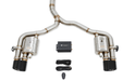 Welcome to a sound revelation for the Audi RS5 B9 Platform. With such a potential powerplant, the 2.9 L V6 hides a truly incredible set of vocals behind the heavy and restrictive factory exhaust equipment. With the Valvetronic Designs full exhaust system, we ensure this incredible powerplant sings all the way up to the redline. Traditionally, in the audi exhaust market, there are many different pieces of the exhaust that you have to purchase from different vendors. We have gone around this and engineered a full exhaust system that connects to the OEM downpipes or aftermarket downpipes and runs all the way back to a set of beautiful exhaust tips. The reason for this stems from our ethos for developing exhaust systems for the Audi platforms and beyond, and to engineer and deliver the best sound experience with a single exhaust solution. Gone are the days where you need to combine your catback system with resonator pipes from a separate vendor. This system is your one stop solution to have unparalleled sound, and no compromises when the valves are open, the car has a very aggressive sound and tons of aggressive overrun when off throttle. With the valves closed. The car goes back to sounding like it's bone stock.