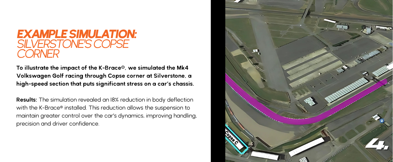The results? The K-Brace® was proven to reduce body displacement by 18%, delivering measurable improvements in handling under real-world conditions.
